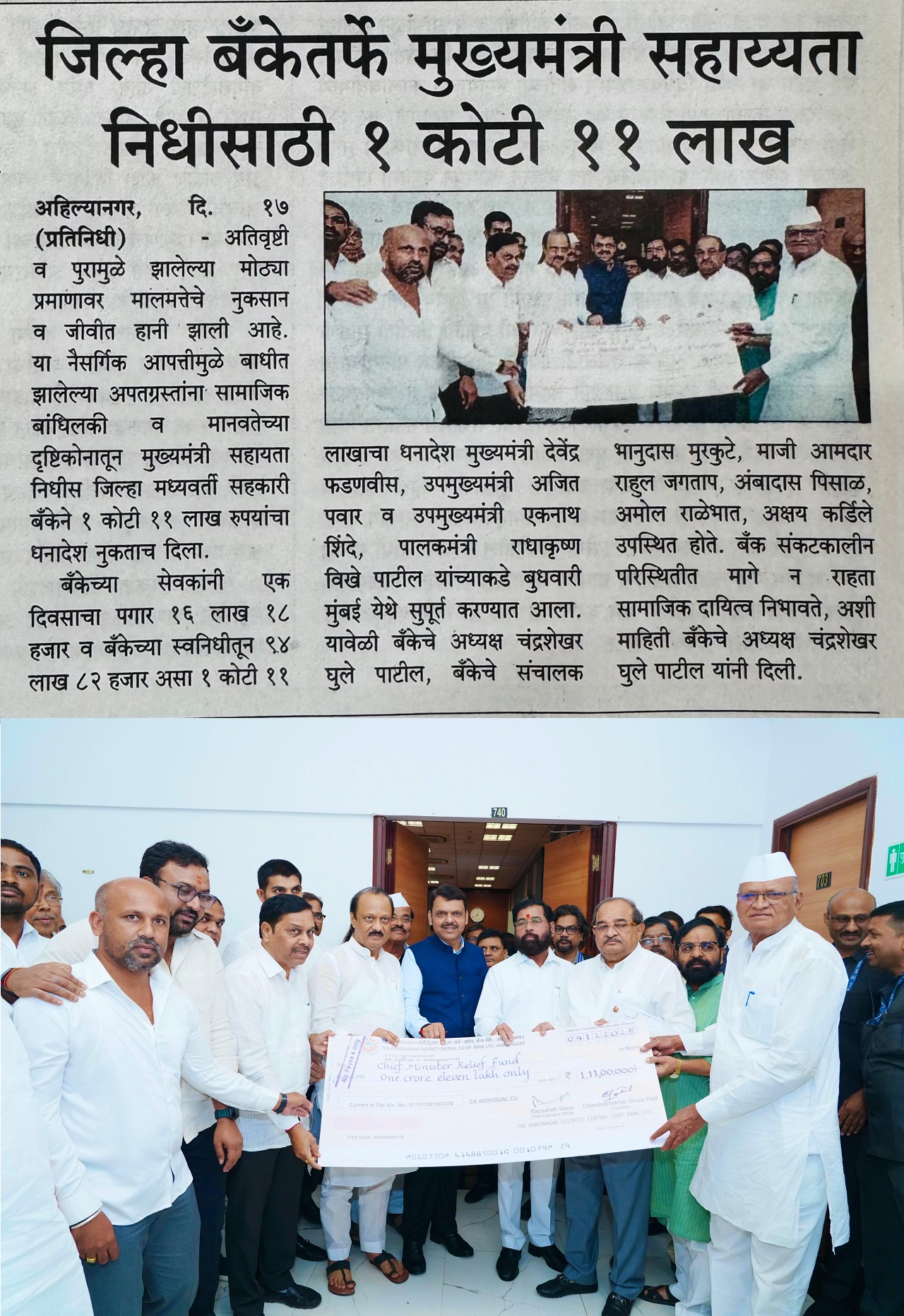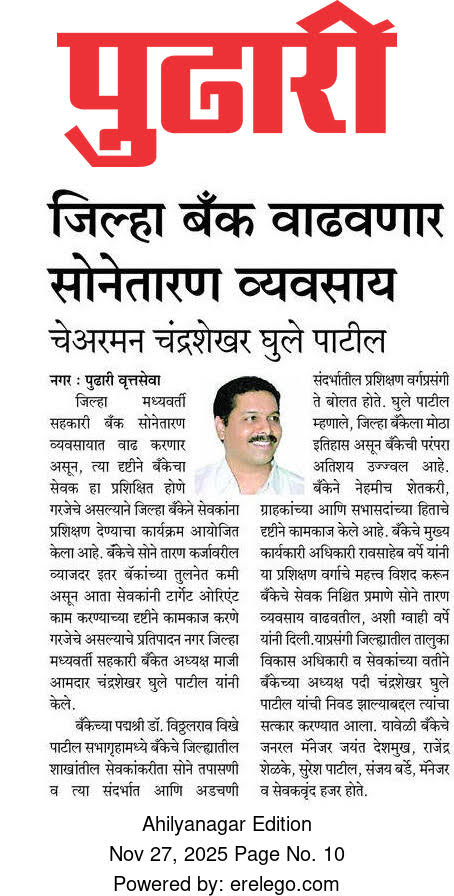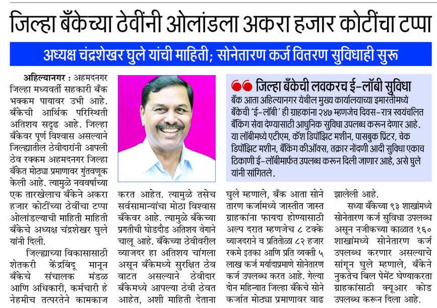The Ahmednagar District Central Co-operative Bank Ltd.,Ahmednagar.. Ahmednagar was registered on 3rd Oct 1957,under section 10 of the Bombay Sate Co-operative Act 1925, with its head quarters at Ahmednagar. The bank started functioning from 1st May 1958. This bank is the central financing agency of the distnct and began its journey towards the noble aim of helping weaker sections of the community and poor rural masses to improve their level and living through cooperation. The area of operation of the bank is confined to Ahmednagar district, which consists of 14 talukas covering 1503 villages and eleven towns.The ADCC bank started its operation with an initial amount of share capital was Rs. 11.22 lakhs and Rs, 149.34 lakhs as working capital, The amount of deposit was Rs. 55.48 lakhs and loan disbursement was Rs. 126.29 lakhs at the end of 30th June 1958. The bank opened 17 Branches in the district in the same year. During the last 40 years ADCC bank Ahmednagar has shown remarkable progress in all types of activities and functions. Today the bank has 287 branches Plus 11 Extension Counters spread over the entire district. The bank has been awarded ‘A, Audit classification from in the last many years.