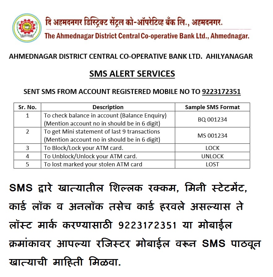 The main promoter of this bank is Shri Motilal Firodia, Dr. Mr. V. Nisal, M. P. Bora, C.K. Patil, L. B. Patil, V. D. Moosmade, J. V. Bankar, H.T. Shelke, K. V. Rohmare, Raosaheb, K. N. Dhanwate, H.K. Kale, P. J. Ambre and Hon. S. Ghule Patil submitted the proposal for registration of this bank on 3rd October 1957 as Ahmednagar District Central Co-op. Bank Ltd. Registered No. 24910/1957. The operations of the bank resumed on March 21, 1958 at Deviwada near the City Police Line in Ahmednagar.